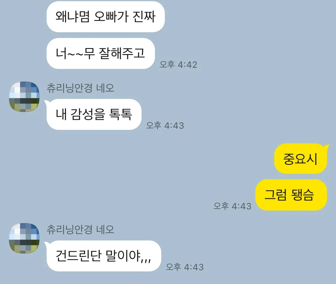 고맙다고 밥사주는 자리에서 여자5호를 봤는데 하루종일 입이 귀에 걸려있었다. 너무나 행복한 연애를 하는 여자5호.