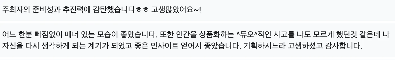 남는게 ‘이성간의 만남’ 그 이상이었으면 좋겠다는게 호스트의 찐 마음입니둥,,, 제 진심이 담겼눈지 왔던 참가자분들도 정확히 그 포인트를 느끼고 가시더라구요 ? 백문이불여일견 일단 후기부터 보고 오삼 ..