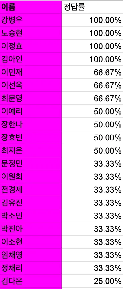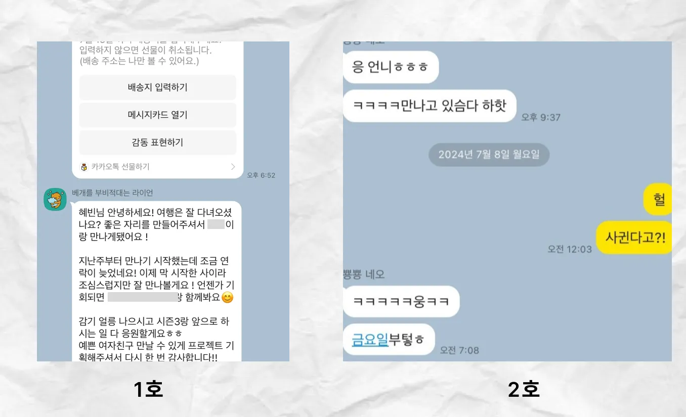 제가 사전미션 ‘내 님을 찾아라’로 매칭해준 사람을 최종적으로 고른 경우가 많았습니다. 혜고리즘 열일