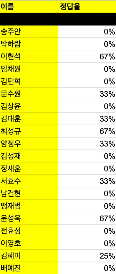 100% 맞춘 사람 샤론님 강유민님 나왔으나!!!