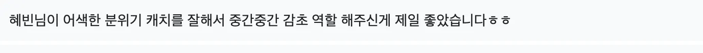 내가 혜친소 계속하는 이유가 먼지 알아? 피드백 보고 다음엔 이렇게 고쳐봐야지 저렇게 고쳐봐야지 하면서 그 다음이 궁금해지는 호기심 때문?? 항상 성장하는 혜친소