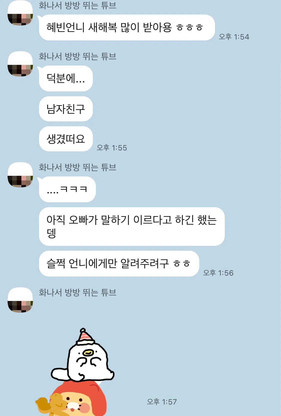 남자친구가 말하지 말랬지만 바로 나에게 달려와서 말하는 병아리.. 기여붐 ..