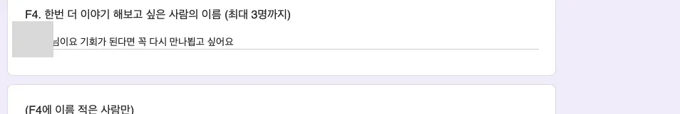 보통 사후 매칭을 위해 이름 적으라할 때 한사람만 적는거 드문데 그는 오로지 전에 놓쳤떤 그녀의 이름만을 적었고