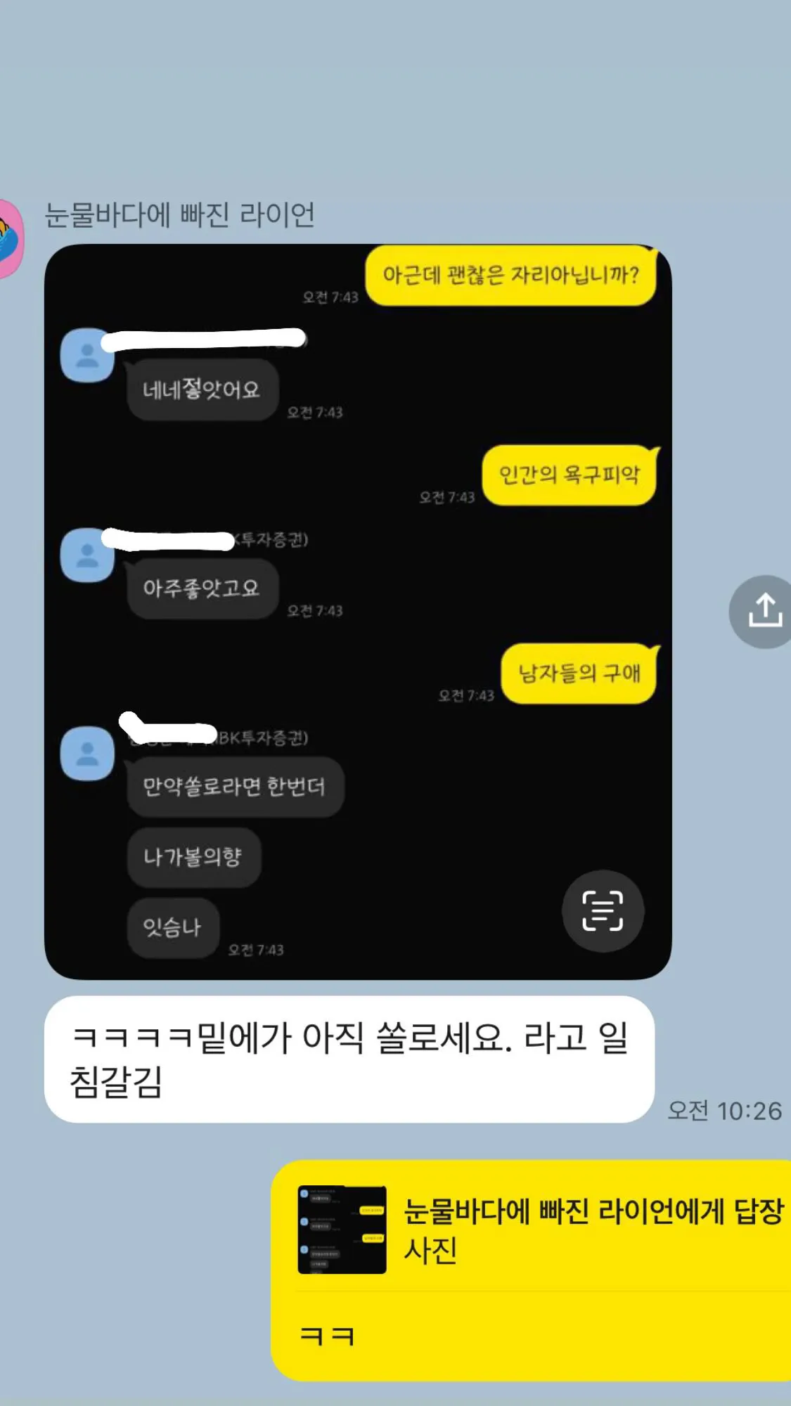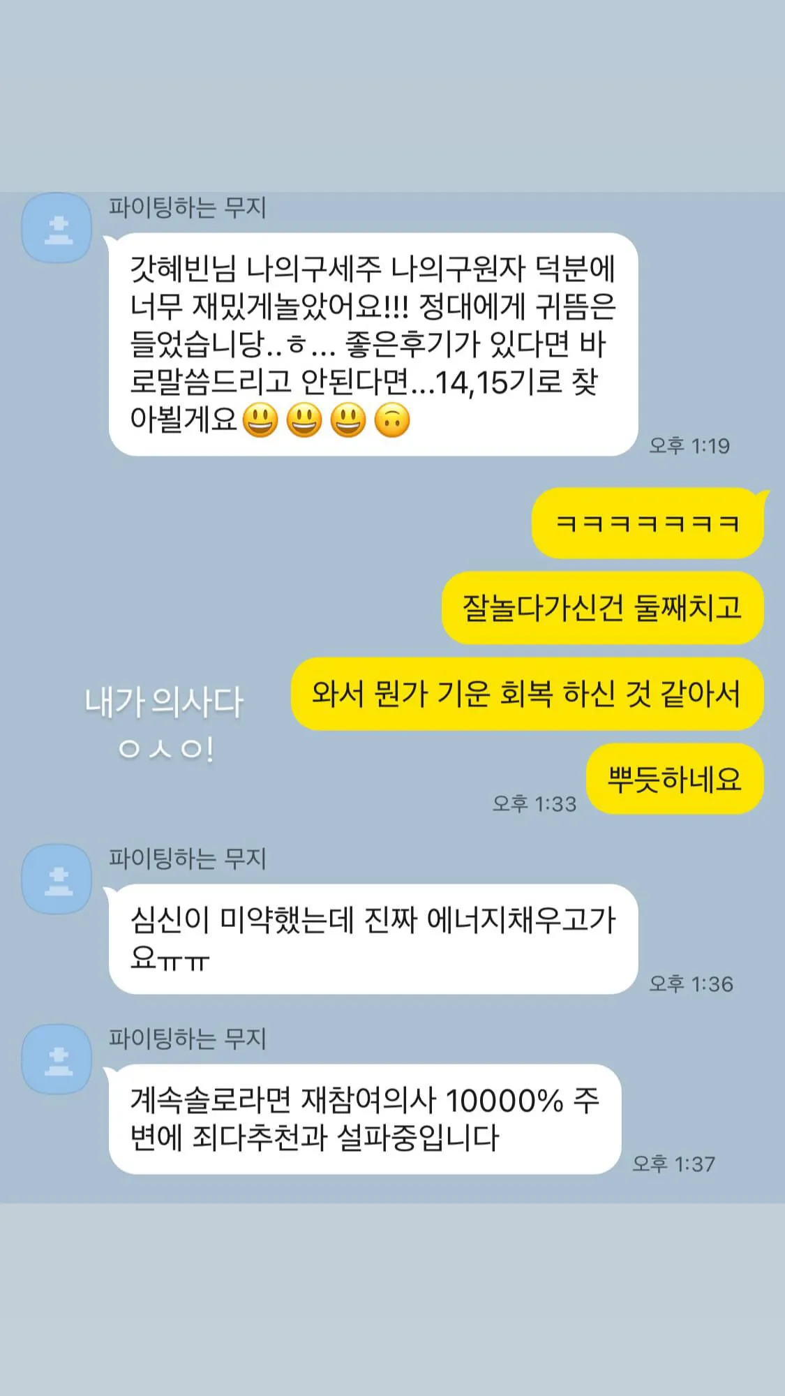 재밌었다는 카톡 끝난지 5일이 지나도 받았슈