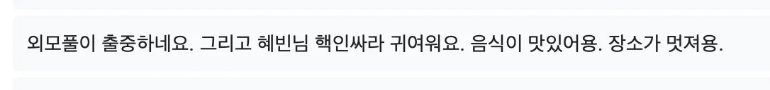 ㅋㅋㅋㅋㅋㅋㅋㅋ 친구들한테 고민상담할법한 내용 넣었어요. 난 하루종일 혜친소만 생각해.. 애들이랑 연애 이야기할 때도 아 이거 혜친소 주제다! 하고 넣으니까 현실감 터지는 주제 넣는듯해여?
