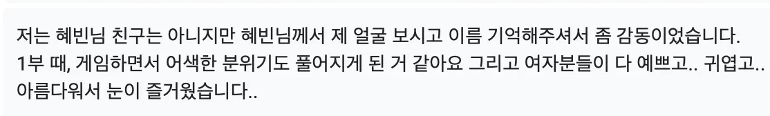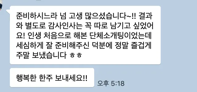 이 분 정말 예의 바르시다.. 이렇게 남자분이 따로 감사 인사 보내지 않는데.. 이번 시즌 최고 진국 …